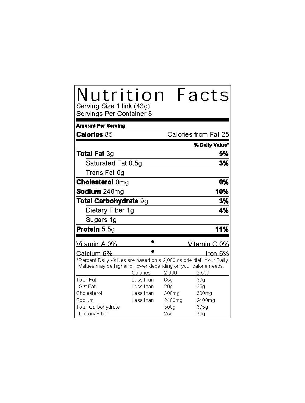 Calories in SoyBoy Not Dogs and Nutrition Facts - FatSecret SoyBoy Not Dogs Nutrition Facts Serving Size 1 link (43 g) Amount Per Serving Calories 90 % Daily Values* Total Fat 3.00g 4% Saturated Fat 0.500g 3% Trans Fat 0.000g Cholesterol 0mg 0% Sodium 240mg 10% Total Carbohydrate 10.00g 4% Dietary Fiber 1.0g 4% Sugars 1.00g Protein 6.00g Vitamin D - Calcium - Iron - Potassium -
